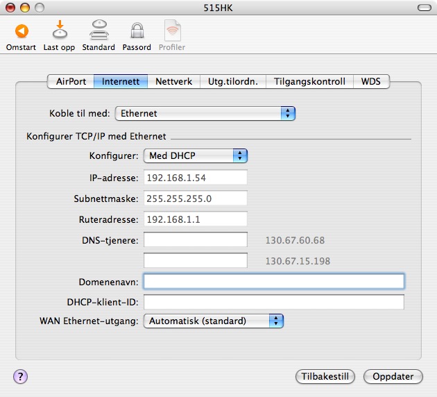 3. Under "Verktøy" i airport-innstillingsverktøyet; sjekk at