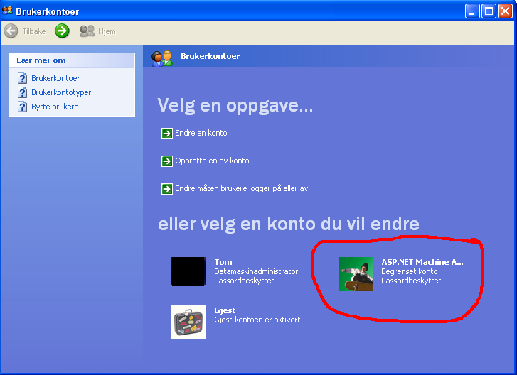 Chakl Skrevet 26. juli 2006 Skrevet 26. juli 2006 Hvis jeg huske det rett, så fikk jeg den kontoen etter å ha innstallert Microsoft .NET Framework.