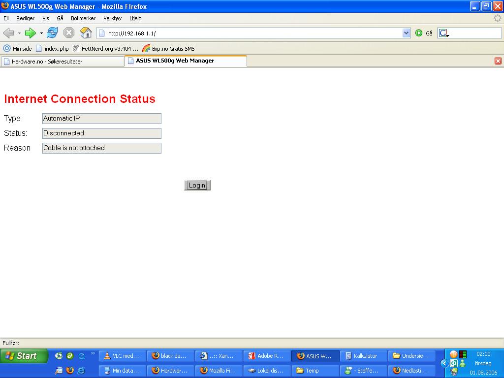 XanderX Skrevet 1. august 2006 Skrevet 1. august 2006 (endret) Det som er problemet er at jeg kan miste internett leseren og msn ,men torrent nedlastningsprogramet forsetter og nedlaste, i andre tilfeller er det at jeg bare har nettleseren. Jeg har en Asus WL500g router som jeg fikk gratis mens jeg arbeidet for et år siden. Jeg har den nyeste firmware. Når jeg skulle logge meg på for å sjekke dette så fikk deg denne melding det var rart for jeg har nett tilkobling og det er ikke noe galt nå. Spekulerer om det kan være noe galt med routeren Endret 1. august 2006 av XanderX