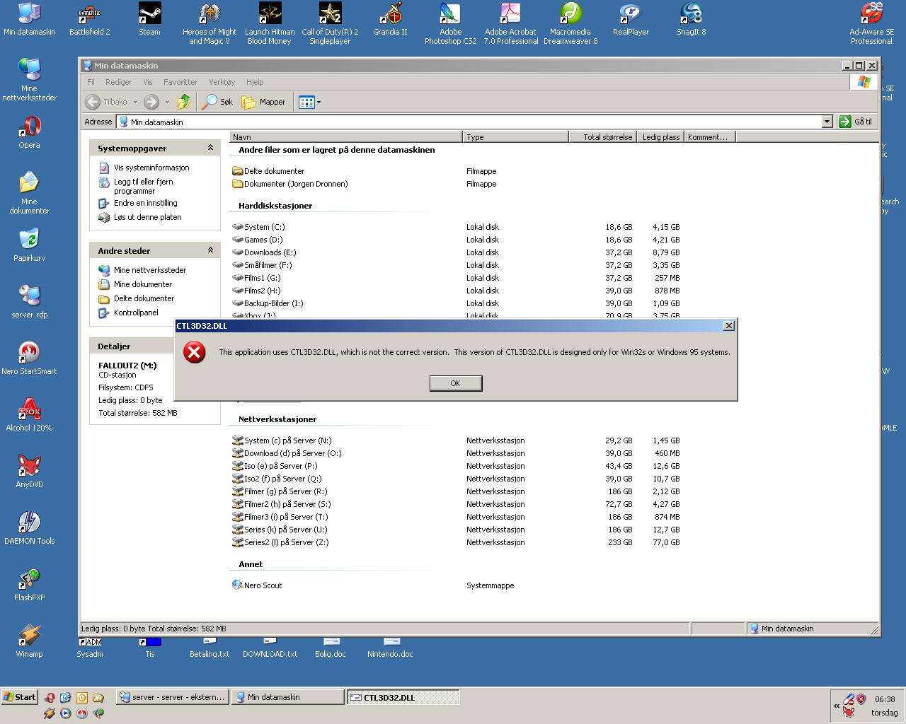 Jdronnen Skrevet 3. august 2006 Skrevet 3. august 2006 Ok, jeg har begynt på igjen med gode gamle Fallout 2. Innstallert, og patchet til den nye 1.02 patchen. Men etter en stund i spillet så bare blir skjermen svart og jeg får ingen kontakt med noe. Må bare restarte pc`en. Noen som har samme problem ? Eller som vet hvordan fikse det ? Når jeg starter spillet får jeg en merkelig feilmelding (SE BILDE), kanskje dette har noe med saken å gjøre. Men spillet fungerer helt fint, helt til det plutselig crasher!! Takker for alle svar!