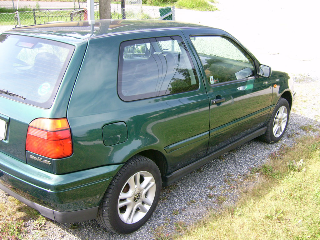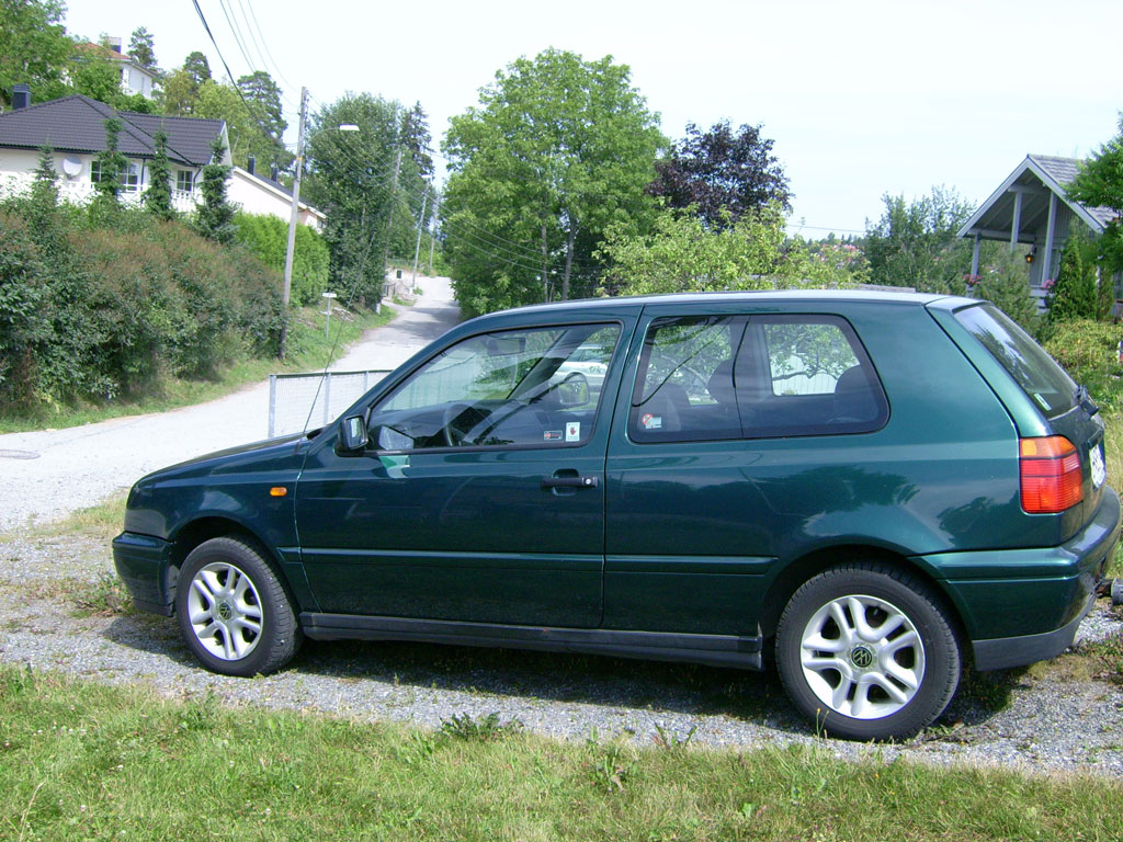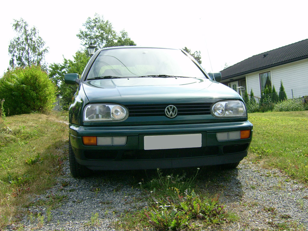 Dr3as Skrevet 3. august 2006 Skrevet 3. august 2006 (endret) Får kaste opp en Worklog/Showcase jeg også, selv om det for øyeblikket ikke er mye å vise frem. Kjøpte Golfen forrige uke av ei snakkesalig dame. Bilen er i ganske god stand, rust kun på list under førerdøra og på bensinlokket. Noen småriper er det jo rundt om kring, men det som er litt kjipt er taket, HATER takstativ Har fått ordnet med lakkering så må bare finne en tid jeg kan leve uten den Motorvolum: 1,6 liter HK: 100 Kilometerstand: ca. 129000 Anlegg: VDO Dayton spiller og frontsett(Ikke fått alt ennå da de var tom på lageret) Diverse: Sentrallås, A/C, Lakkerte lister og speil, Servo, Airbag og El. speil, Planer: Få et brukbart anlegg, ikke no dunk dunk men som er behagelig å høre på. Småpynt utsendemessig, klare sideblink er bestilt, skal også komme angeleyes. Armlene(bestilt) Fjerning av hengerfeste(?) Nye felger til våren(Dekka både på sommer og vinter er så vidt slitt :S, vinterdekka står til og med på stålfelg, så får vel se om det skjer noe der også) Mere kommer Endret 3. august 2006 av Dr3as