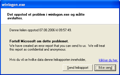 Gunn@r Skrevet 7. august 2006 Skrevet 7. august 2006 Når jeg starter opp Windows XP får jeg opp feilmeldinger ved winlogon.exe og iexplorer.exe Eksempel: 1. Jeg starter et program, venter litt...og får opp feilmelding der det står at det har oppstått en feil i winlogon.exe 2. Jeg starter internett explorer, venter litt...og får opp feilmeldingen der det står at iexplorer.exe har et problem og må lukkes Jeg har også fått opp ei melding der det står noe sånt som at minnet ikke kunne være "read" og med noen ville koder (noe sånt som dette: 000001X10)... Hva skal jeg gjøre?? feil_1.bmp feil_2.bmp