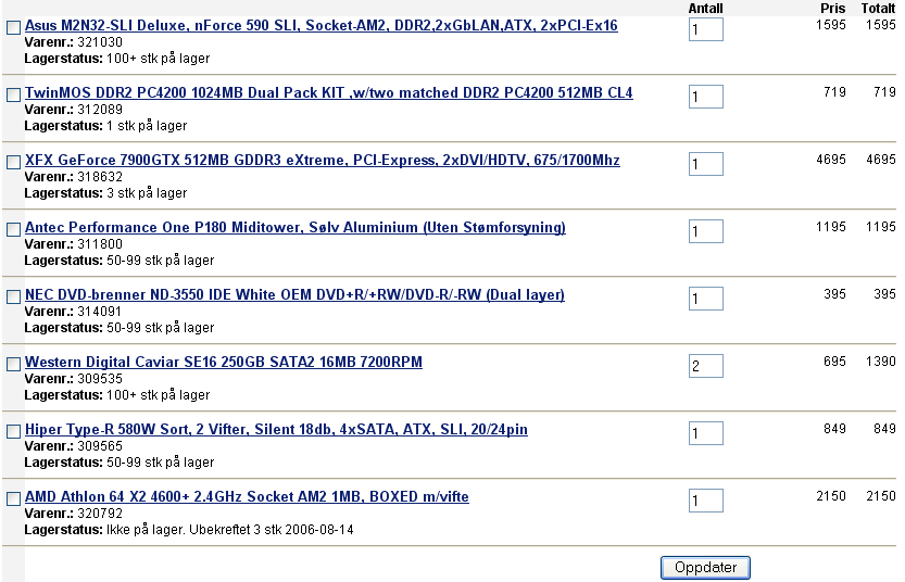 lOvebakken Skrevet 12. august 2006 Skrevet 12. august 2006 Skal kjøpe ny pc til ca 13000 og lurer på om delene jeg har valgt passer sammen (spesielt hovedkort og E6600). Den skal for det meste brukes til spilling og skal overklokkes så mye den klarer stabilt (noen timer med prime95). Er ute etter kommentarer og forslag til forandringer. Her er systemet jeg har tenkt å kjøpe.