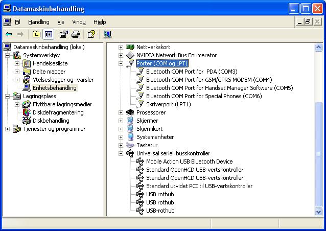 Gunn@r Skrevet 19. august 2006 Skrevet 19. august 2006 Jeg har en bluetooth-adapter som jeg kjøpte for rundt 1 år siden. Nå har jeg formatert PCen min og har installert alt av systemdrivere og updates og det som tenkes kan! Når jeg kobler til adapteren finner windows den og installerer driveren automatisk (valgte Installere programvaren automatisk (anbefales) når windows fant adapteren). Til nå er jo alt topp, men så vil jeg jo gjerne ta buetooth-adapteren i bruk. Men det finnes ingen ikoner eller noe som helst som jeg kan aktivere adapteren med. Det eneste tegn på maskinen til at det er installert no bluetooth-greier er i Enhetsbehandling (se bildet) under Porter (COM og LPT) og under Universal seriell busskontroller. Så hva gjør jeg? Alle svar mottaes med et STORT TAKK