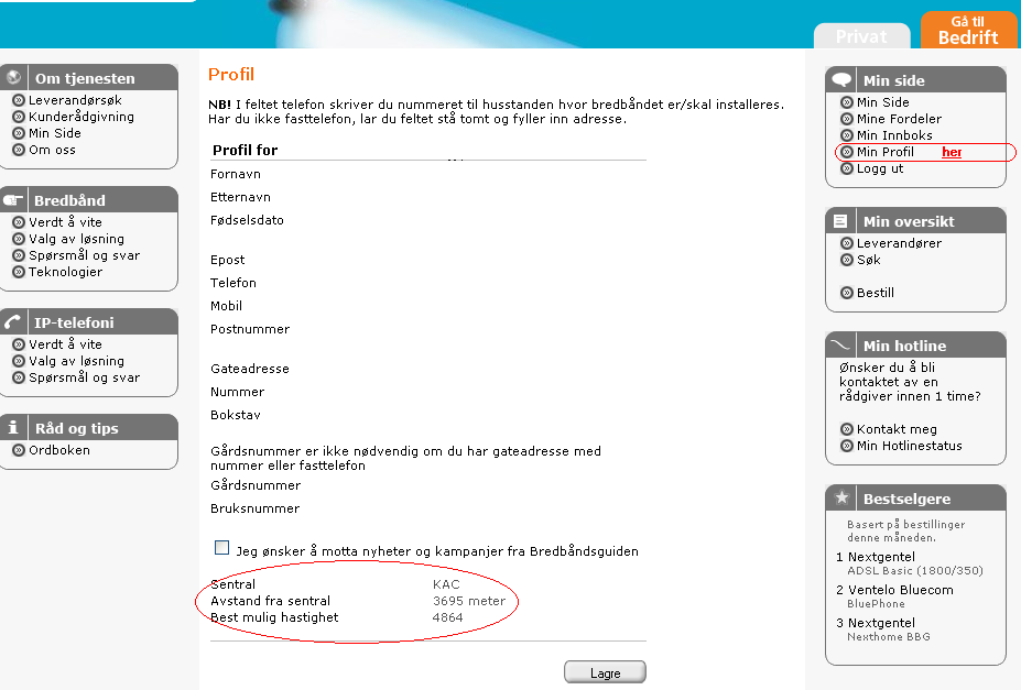 just-_-me Skrevet 4. oktober 2006 Skrevet 4. oktober 2006 (endret) Det stemmer det. Vanlig ADSL funker fett. ADSL2 not. Men vi skal betale i dyre dommer selv om NGT vet at ledningsnettet ikke er godt nok.. I mitt tilfelle har NGT løyet om at de feilsøkte mitt nett. De har sagt at saken videresendtes til teknisk utredning. For å få meg til å holde munn. Det skjedde aldri noe, og det er svært svært lenge siden. De neste henvendelsene mine gjorde det klart at nei de hadde fremdeles ikke skjønt at noe var galt med nettet mitt. "Det synket så fint i ruteren" ...ja da var alt i skjønneste orden. Klart at jeg er villig til å betale 500 kr i måneden for en ruter som synker med 17 mbit i ruteren, men gir alt fra 64 kbsek til 4-5.000 kbsek periodevis.. gjennomsnittlig ca 2.000-3.000 kbsek... Fremdeles har ikke NGT innsett at linjen min fungerer.. Har en mistanke om at kundeservicen er fysisk plassert i østeuropa med ansatte opplært til å si norske gloser og fraser basert på "trigger-ord". På lik linje med epostsupporten.. Kommer det feks to ord i samme epost, setter det automatiske svarprogrammet igang med å sende makrosvar. ..det er slik det føles i hvertfall.. 6971691[/snapback] Hvis du går inn her; http://www.bredbandsguiden.no, og reistrerer deg, kan du gå inn på "min profil" og finne ut hvor lang avstand du har til sentralen du er koblet til bilde: ngt....bmp Endret 4. oktober 2006 av just-_-me