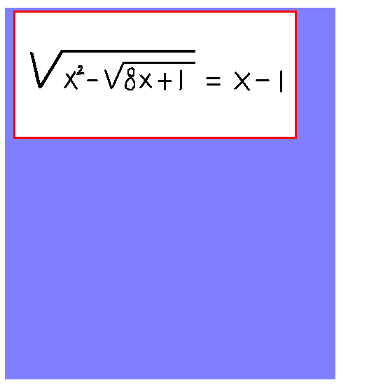 klilleng Skrevet 21. september 2006 Skrevet 21. september 2006 God idè! gjorde det med det samme. 6907429[/snapback] Ok. En stund siden jeg regnet med sånt, men tror jeg ville gjort det slik: Rot er symbolisert med ^0,5. (x^2 - (8x+1)^0,5 )^0,5 = (x-1) opphøyer i ^2 på begge sider: x^2 - (8x+1)^0,5 = (x-1)^2 = x^2 - 2x + 1 flytter over: -(8x+1)^0,5 = x^2 - 2x + 1 - x^2 = -2x + 1 fjerner kjipt fortegn: (8x+1)^0,5 = 2x - 1 opphøyer i ^2 igjen: 8x + 1 = (2x-1)^2 = 4x^2 - 4x + 1 flytter over: 4x^2 - 12x = 0 faktoriserer: 4x(x - 3) = 0 og får som svar: x = 0 eller x = 3 Mulig x = 0 ikke er en gyldig løsning her, som sagt lenge siden jeg gjorde dette. Kan hende det er noe feil her, men det oppdages isåfall sikkert av noen andre.