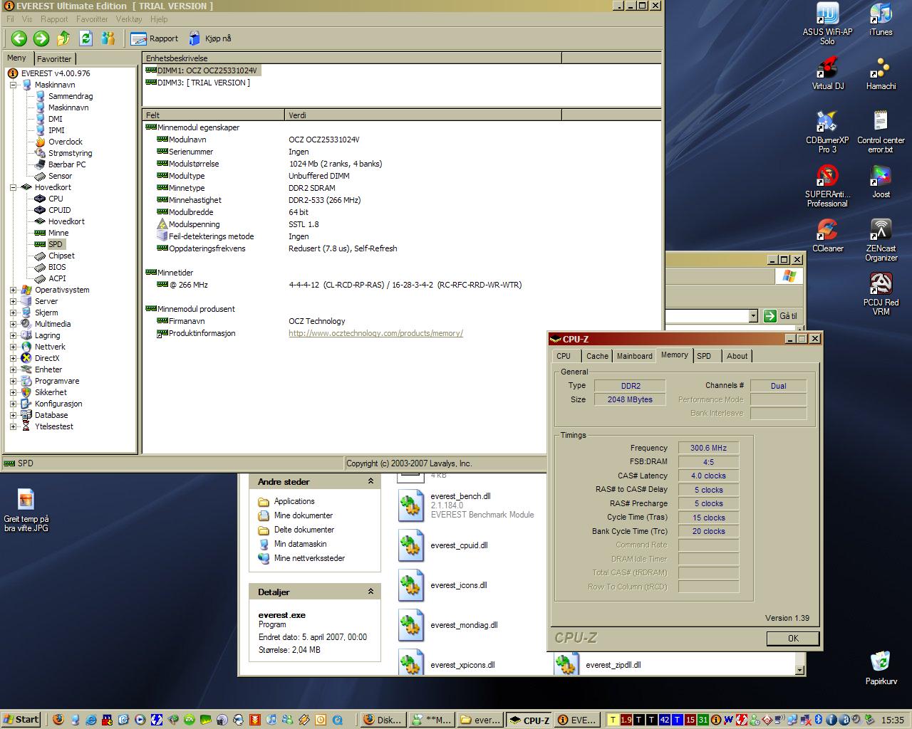Phinex Skrevet 1. juni 2007 Skrevet 1. juni 2007 Jess, nå er jeg med å tester min eldre pentium 4 530 "prescott" på dette kortet. Jeg har ikke rørt minnevolten (er så usikker der) mens cpu volt er skrudd opp til 1,45.. Men når jeg klokker mer enn 240 så stopper pcen å svare, blåskjerm etc.. Noen tips til hva jeg bør gjøre ? Har nyeste bios.. (2004) Nb, har DDR2 pc4300 , som går inn som 3200 på bios (noe jeg ikke har skjønt helt hvorfor) Legger ved et bilde av litt specs og av minnet: Bilde av minnefrekvenser etc: