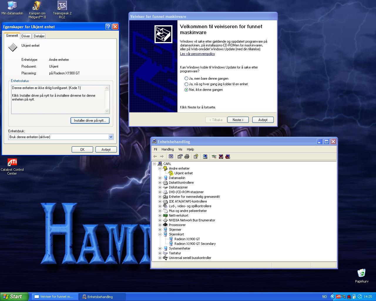 carl-kr. Skrevet 28. oktober 2006 Forfatter Skrevet 28. oktober 2006 okey.. nyeste driver fra ati og control center er nå instalert. virkere stabilt,men når maskinen starter opp får jeg beskjed om at en ny maskinvare er funnet?? på enhetsbehandling er det kommet opp et gult spørsmålstegn.