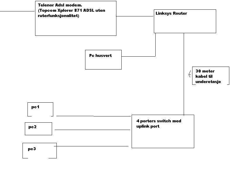 matrosen Skrevet 28. oktober 2006 Skrevet 28. oktober 2006 Hei. Skal hjelpe en kamerat av meg som leier en sokkel i underetasje med å få nett ned til seg. Husverten har et ADSL modem uten routerfunksjon. Tenkte da og kjøpe en slik router: LINKSYS ROUTER Fra routeren vil det bli trukket kabel ned 2 etasjer. Der tenkte jeg og sette opp en 4 port switch med uplink port. Er det da bare og sette kabelen fra ruteren til switchen i uplink porten på switchen for å få nett på flere pcer?