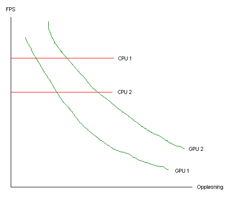 Simen1 Skrevet 23. januar 2007 Skrevet 23. januar 2007 Klikk for å se/fjerne innholdet nedenfor Oppgevene som CPU gjør øker ikke med oppløsninga. Oppgavene som GPU gjør øker med oppløsninga. Jo høyere oppløsning, jo lavere FPS. Men denne nedgangen skyldes altså ikke CPU, men GPU. Jo høyere oppløsninga er jo mer begrenser skjermkortet og dermed minker ytelseforskjellen mellom ulike CPUer. Bare for å ta et par ekstreme eksempler: - På 640x480 kan man se store forskjeller mellom ulike CPUer fordi GPU ikke begrenser i det hele tatt. Siden GPU ikke begrenser er det ingen ytelseforskjell mellom ulike skjermkort. - På 2560x1600 ser man ingen forskjeller mellom ulike CPUer fordi det er GPU som utelukkende begrenser hastigheten. Det er derimot enorme forskjeller på ytelse mellom de ulike skjermkortene. Diagram over ytelse vs. oppløsning. Hvis man f.eks ser 5% forskjell mellom CPU1 og CPU2 i 1024x768 og øker oppløsninga så vil begrensningene i GPU1 eller GPU2 trekke ned antall FPS på begge to. Forskjellen blir mindre (eller forsvinner helt) mellom de to CPUene.