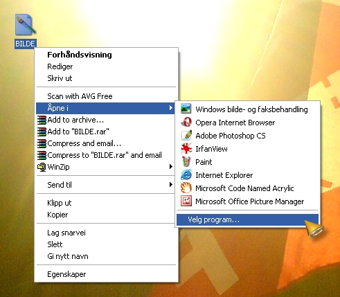 Phrank Skrevet 22. november 2006 Forfatter Skrevet 22. november 2006 Dette fungerer i hvertfall hos meg, og burde fungere hos deg også: 7338600[/snapback] Joa, fungerer fint det, men det løser ikke mitt problem. Jeg vil bruke ACDsee til å se/behandle bilder til vanlig, men ikke til å åpne epostvedlegg (tar dritlang tid å åpne pga geriatrisk maskin). Man kan selvfølgelig bruke høyreklikk->åpne som-taktikken, men det ville vært kult om man kunne komme seg unna med dobbeltklikk.