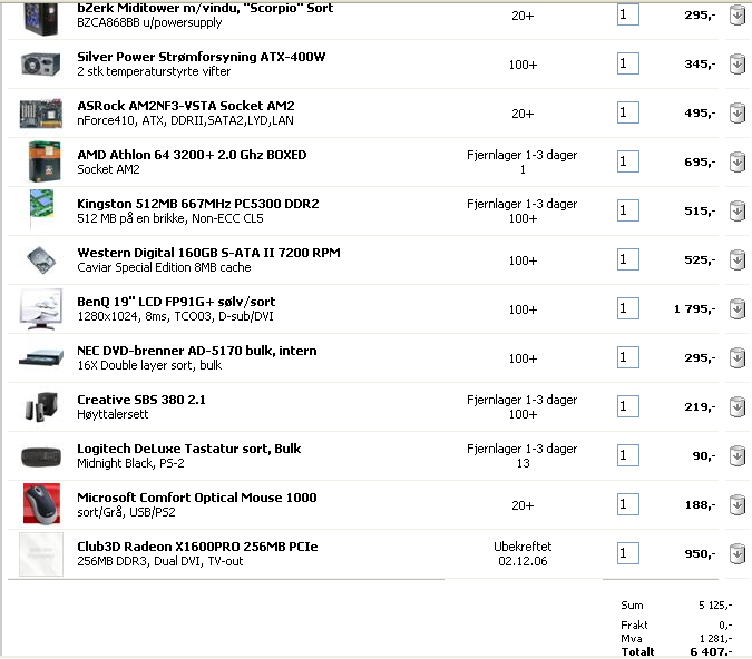 1ar Skrevet 28. november 2006 Skrevet 28. november 2006 Har gått utifra at du trenger full pakke, og det blir ikke mye til gaming PC da, men legger ved et oppsett som jeg lagde til en annen kar som skulle ha PC i samme prisklasse. Men du bør vurdere å kjøpe en 512 brikke til, samt gjerne gå for 3500+ CPU. Netshop_pakke.bmp
