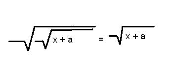 MrQuote-on-Quote Skrevet 27. november 2006 Skrevet 27. november 2006 sqrt(sqrt(x+a)) = sqrt(x+a) Kvadrerer på begge sidene og får: sqrt(x+a) = x+a Hvis kvadratrota av x+a er det samme som x+a, så må x+a være 1 eller 0 (fordi da blir tallet og dets kvadratrot det samme). Det fører igjen til at x må være enten x=1-a (dette blir 1), eller x=-a (dette blir 0).
