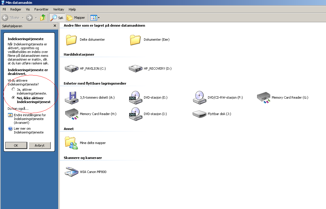 jonas27389 Skrevet 10. desember 2006 Forfatter Skrevet 10. desember 2006 Heisann, har ikke indeksering på disken nei....