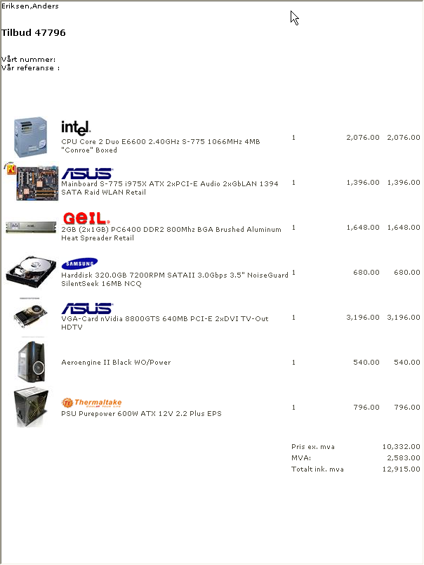 -Eriksen Skrevet 18. desember 2006 Skrevet 18. desember 2006 Jeg satt sammen ett oppsett på psdata til ganske nøyaktig 13000. Her er det ett DX10 grafikkort med 640MB minne, og en E6600. Du kan sikkert bytte grafikkkortet til noe litt billigere, men her er ihvertfall et supert oppsett