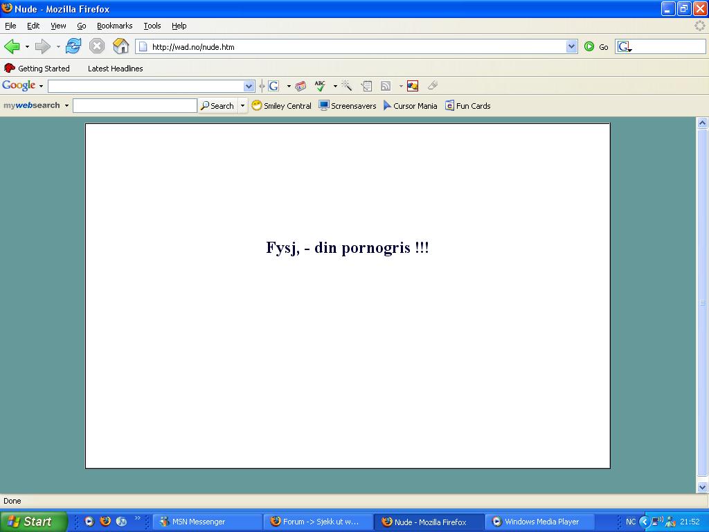 since91 Skrevet 19. desember 2006 Skrevet 19. desember 2006 Kom tilfeldigvis over wad.no etter å ha tastet feil adresse :!: Skal jeg liksom ta den fyren seriøst?!