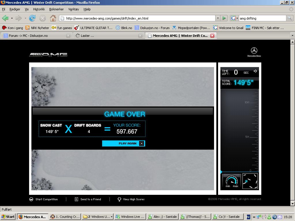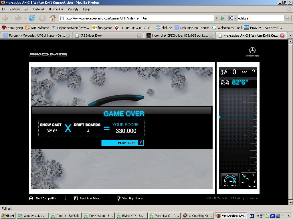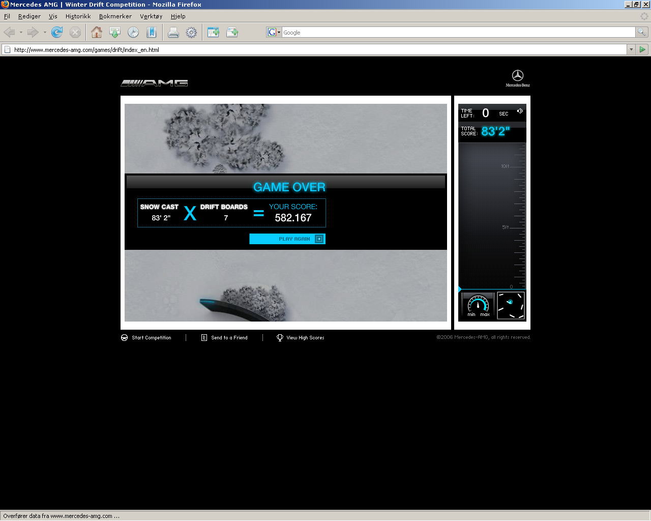 12Anonym12 Skrevet 20. desember 2006 Skrevet 20. desember 2006 (endret) Hei hei, kom over et drit fett spill http://www.mercedes-amg.com/games/drift/index_en.html Her kan man diskutere spillet og hvor mye poeng du fikk Edit: Mitt beste : Endret 20. desember 2006 av Espen56
