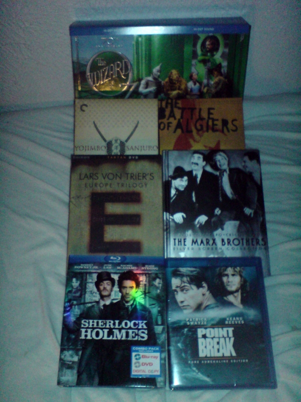 Itillegg til den over, som forøvrig kostet meg $54.99, kom Yojimbo/Sanjuro - Criterion Collection som kostet meg $48.99. Begge disse settene ble det begjært mums på og delte fortollingsgebyr med DVD-en The Battle of Algiers - Criterion Collection som også kostet over de tohundre. Også fikk jeg Sherlock Holmes og Point Break, som kostet meg $24.99 og $11.49.