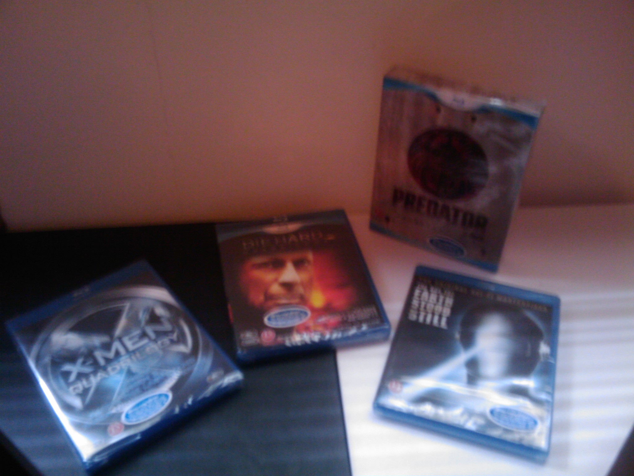 Kjøpte nettopp inn The dark knight, The last samurai, The hurt locker og 2012 etter at jeg snublet innom Elkjøp for å kjøpe en USB wifi dongle