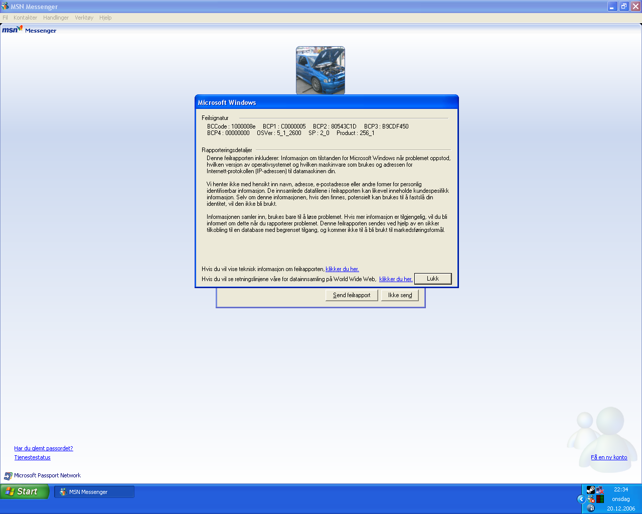 -Shark- Skrevet 20. desember 2006 Skrevet 20. desember 2006 Noe bugg med noen programmer?virus?Har du Sp2?
