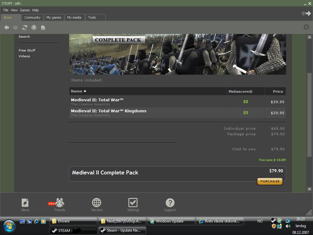 Edvino Skrevet 8. desember 2007 Skrevet 8. desember 2007 (endret) Fantastisk steamtilbud, du sparer -10.00$ Endret 8. desember 2007 av Edvino