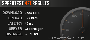 propers404 Skrevet 11. januar 2007 Skrevet 11. januar 2007 Her er min... Er en 3 mbit fra Telenor, så er egentlig ganske fornøyd.