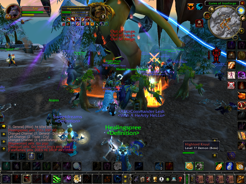 Cappo Skrevet 11. januar 2007 Skrevet 11. januar 2007 Ok logger på til total ødeleggelse av Ironforge:) Tok endel bilder. For dere som ikke veit det er Lord Kruul en level 70 boss som kommer fra portalen til Outlands. Altså en world event. Han 1 shotta hovedbossen i IF foresten. 7700016[/snapback] Hmm.. Har ikke sett noe til Lord Kruul på min server men.. Kanskje han dukker opp en annen dag, hvem vet..