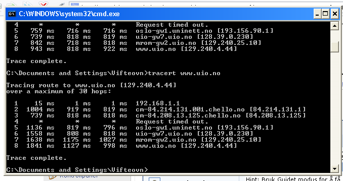 deleder Skrevet 7. februar 2007 Skrevet 7. februar 2007 Bruke p2p-programmer ja (bare til lovlige programmer så klart) MEN problema er der sjølv om eg ikkje bruke slike programmer også Problema er dei samme for andre pc'ar i systemet også. Kva er telenett? 7893454[/snapback] Start, kjør, skriv telnet 192.168.1.1 deretter taster du inn brukernavn og passord. Så skriver du "Ping www.uio.no", så lar du det gå f.eks 10 minutter før du holder inne CTRL-tasten og trykker på c, da kan du se hvor mye "Packet loss". Skriv her hva som står der.