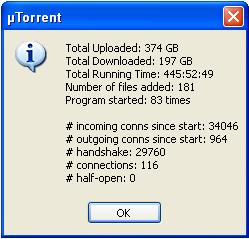 CurSe Skrevet 10. februar 2007 Skrevet 10. februar 2007 (endret) Bare av ren nysgjerrighet, hva er din seed-rate i Bittorrent? Selv så er jeg ikke så voldsomt glad i å spre diverse filer for mye, men passer på at jeg alltid ligger over 1.0 i rate. Hvis det skulle være få seedere på en torrent så pleier jeg å drøye den litt lengre, men tror jeg fremdeles har til gode å ha over 10 i rate på en torrent(av nevneverdig størrelse) Selv så har jeg ca 1.9 i seed-rate. Kan tenke meg at uTorrent har ført statistikk siden slutten av oktober 2006. Edit: 10Mbit linje ut og inn. Endret 10. februar 2007 av CurSe