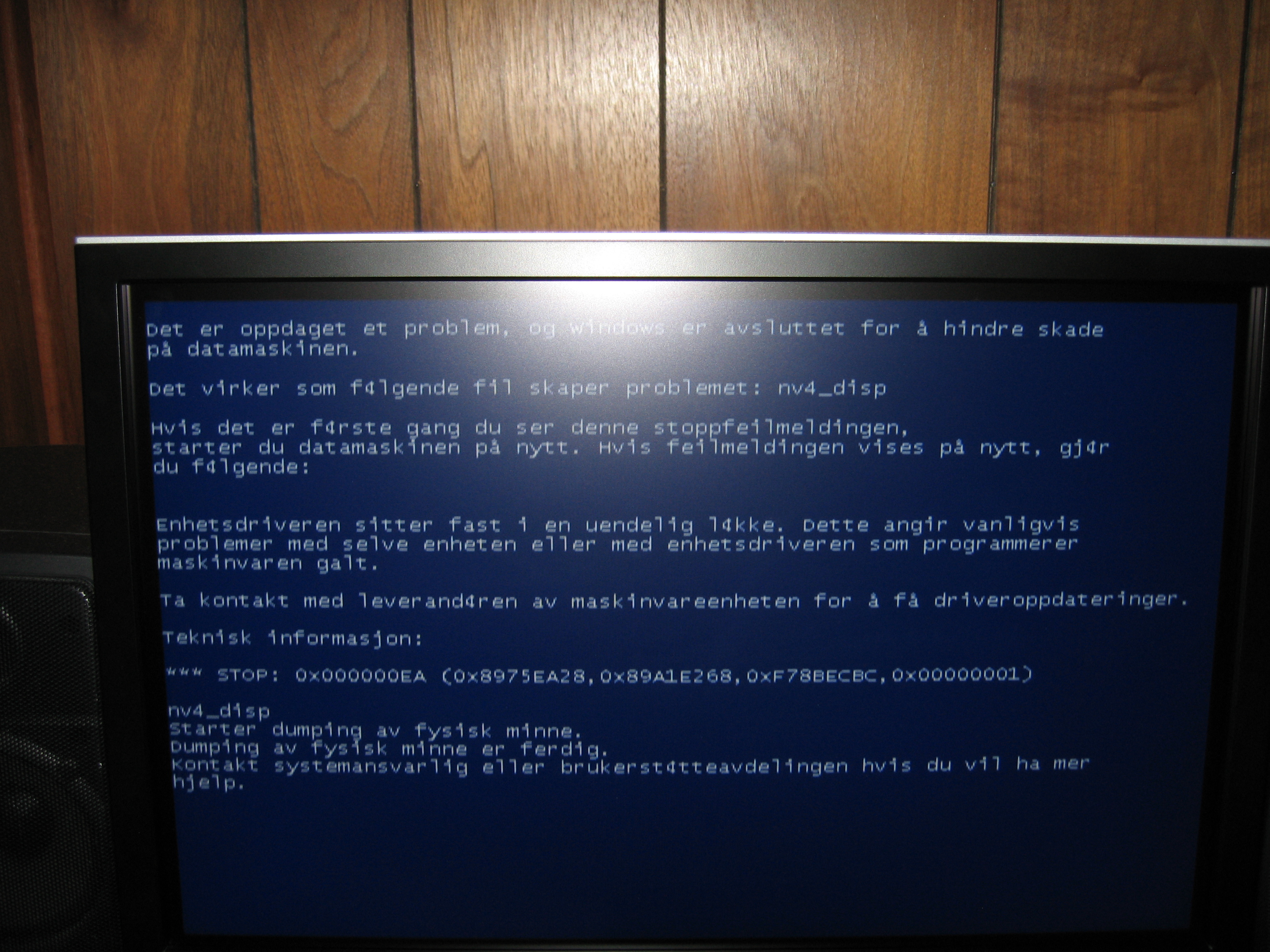 trygveaa Skrevet 10. februar 2007 Skrevet 10. februar 2007 Jeg har kjøpt ny PC og fått startet den opp uten problemer, men når jeg starter Counter Strike går det veldig tregt med en gang og etter en liten stund får jeg blue screen Dette er delene jeg har: Hovedkort: Asus P5W DH Deluxe Prosessor: Intel Core 2 Duo E6600 Minne: Corsair Dominator TWIN2X2048-6400C4D Grafikkort: Gainward GeForce 8800 GTS Jeg kjører XP Home 32-bit. Jeg har installert nyeste driver fra Nvidia, 97.92. Jeg har også prøvd å reinstallere driveren. Dette er de to blue screenene jeg har fått: