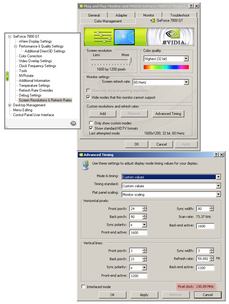 Boye Skrevet 24. februar 2007 Skrevet 24. februar 2007 DVI er ikke så plankekjøring som man skulle tro. Allerede på 1600x1200 60Hz kjører du rundt om 162MHz ut av tilgjengelige 165MHz av hva DVI spesifikasjonene tilsier en TMDS brikke/sender (skjermkort/GPU) og mottaker (skjerm) skal takle. Nå skal jeg være litt forsiktig med hva jeg sier ettersom jeg ikke har forsket nok på akkurat det feltet, men løsningen på å f.eks. kjøre 1920x1200 kan være "reduced blanking" som ser ut til å kutte vekk en stor del overflødig bit med data som opprinnelig var ment for CRT skjermer. For en LCD eier skal det egentlig ikke være merkbart tap, og med dette får man plutselig redusert 1600x1200 162Mhz til noe omkring 130. Dette kjører jeg selv nå, uten at jeg egentlig har bedt om det. Driverene satte dette automatisk på, og det skaper noen -små- tegneproblemer en gang i blant ettersom LCD skjerm også må støtte dette 100%. Løsning på f.eks. 2560x1600 kan være dual TMDS sendere som sammen danner en dual-link. Også skjerm må støtte dette, slik at et nytt skjermkort ikke nødvendigvis vil hjelpe og det er kanskje det artikkelforfatter har oppdaget? For å sjekke om du som Samsung og nVidia eier kjører med såkalt "redusert slukkeperiode" / reduced blanking, kan en sjekke det vedlagte bilde (har da byttet over til det gamle nVidia kontrollpanelet). Normalt vil 1600x1200 gå på rundt om ~162MHz, med reduced blanking skal dette ligge på rundt om 130Mhz. Selv har jeg ikke merket meg noen problemer i spill i flyt eller feil. Hjelper dette? Hvis ikke, da forstår jeg virkelig problemet!