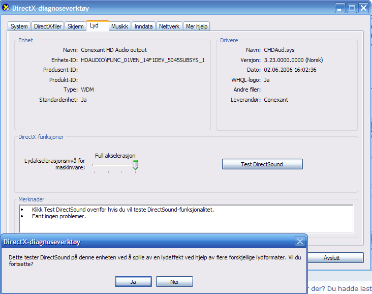 Richardinho Skrevet 1. mars 2007 Skrevet 1. mars 2007 Jeg har hatt dette problemet før men plutselig gikk det vekk like fort som det kom tilbake... Problemet er: Hvis jeg venter for lenge (ca. 30 sek) og prøver å sette på en sang kommer det isteden opp en feilmelding som jeg har vedlagt... Jeg legger også ved annen informasjon som kanskje har noe med saken å gjøre... Siden jeg rett å slett ikke har peiling på PC må dere bare si ifra hvis dere trenger noen annen informasjon. Feilmelding Feilmeldin.bmp Lyder og lydenheter Lyder_og_lydenheter.bmp Enhetsbehandling Enhetsbehandling.bmp Driver info driver_info.bmp Problemet har vert ganske lenge nå så blir takknemlig for alle svar Richard