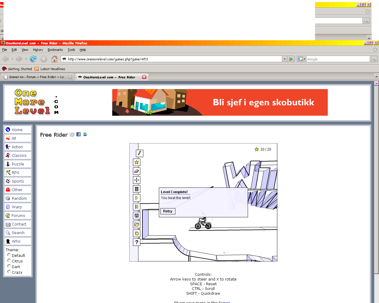 PreaTox Skrevet 15. august 2007 Skrevet 15. august 2007 Ramper'n Vanskelighetsgrad: 2.5 Beregnet forsøk: Laget av: -TelleT- Hint:Ingen Hint 3D-mode:ValgFritt Free Rider Klikk for å se/fjerne innholdet nedenfor -1i,1i,-60,1i -1i,1i,1i,1i 9e,p,1g,1i 9d,17,1h,1h 9e,-u,32,1h 9d,-j,2b,1h 9e,-5,1v,1h 9e,b,1i,1h 1i,1i,6q,1i 9e,-22,4d,1h 9e,-1n,3q,1i 9e,-3j,5t,1l 9e,-35,5g,1k 9e,-2f,4p,1j 9e,-19,3d,1h 9e,-42,69,1k 6q,1i,9g,1i 9c,-4k,7n,1l 9b,-4j,7e,1k 9b,-4j,71,1m 9c,-4i,6m,1m 9b,-4g,82,1k 9d,-4l,8m,1l 9c,-4k,8c,1m 9e,-4k,95,1j 9b,1p,dn,44 9b,24,dt,44 9d,1i,9e,-4k 9e,-2r,56,1i 9e,-p,9o,4g 9f,-m,a0,4e 9f,-p,a6,4c 9e,1h,9d,4e 9f,-o,ae,4f 9e,-p,an,4a 9f,-p,b0,4c 9d,4e,e2,46 9e,-o,bh,4a 9e,-r,br,47 9e,-b,c4,45 9e,-3,ca,47 9e,6,ch,48 9f,g,cn,47 da,-4e,em,1i d9,-4f,et,1f d8,-4e,d8,1k d8,-4e,ee,1i d8,-3u,e3,1h d8,-4g,dq,1k d9,-4e,f7,1h d9,-4g,fi,1f hc,1e,d9,-1u d9,-1g,i2,1j d9,-15,ie,1i da,8,jk,1h da,l,jr,1h d9,11,jr,1h d9,1i,kn,1i 9f,q,cu,48 9e,10,d5,46 m5,41,de,46 d9,-4f,g0,1h g7,1h,d8,-4g d9,-3q,gd,1g da,-3c,gl,1f d9,-2r,gu,1h 9d,2i,eb,45 9d,2r,eo,43 9d,37,fa,44 9e,3n,fo,44 da,-2b,h8,1i h8,1i,hc,1e da,-8,j9,1h kn,1i,nb,1i nb,1i,p6,1k p5,41,m5,41 p6,1k,qd,1o rt,3t,p5,41 vq,2s,qe,3v vs,34,q3,41 vt,3c,pp,40 vr,3q,ro,3t vq,17,rv,3t vr,1h,ro,3u vr,1q,ri,3v vr,24,rd,3u vr,2c,r0,3u vs,-3,sv,3s vs,4,sq,3s vr,9,sj,3t vr,h,sf,3t vq,m,sa,3u vs,u,s4,3t vp,-l,tk,3q vq,-f,te,3s vs,2l,qq,3u vm,-p,um,3o vs,-a,t7,3r vl,-p,ub,3s vj,-p,u3,3q vk,-p,ts,3q vn,-p,v3,3q vr,-n,vr,3q vq,-o,vk,3q vp,-p,ve,3r vo,-p,v9,3r 125,-3j,125,-5d 125,-5d,12a,-3h 125,-5d,12h,-3g 125,-5d,12q,-3b 124,-5d,135,-38 125,-5d,13f,-34 125,-54,13i,-36 125,-4o,13q,-33 124,-3j,14t,-2n 126,-4c,142,-30 125,-41,14d,-2t 126,-3o,14n,-2q 125,-3i,125,-p 129,-3i,12k,-o 125,-3i,12t,-p 124,-3k,136,-p 126,-3g,13e,-r 124,-3g,12d,-m 124,-37,12h,-n 125,-34,12o,-q 125,-p,1ai,-o 126,-3g,13u,-p 127,-3i,14i,-n 14r,-2o,1ah,-1p 1ah,-32,15d,-2k 126,-3i,151,-m 124,-3g,15a,-o 126,-3g,15k,-m 125,-3j,15v,-p 125,-3g,16e,-o 125,-39,146,-o 1ah,-4j,171,-2b 1ah,-46,16l,-2d 1ah,-3s,16b,-2e 1ag,-3j,15v,-2h 1ai,-3a,15m,-2j 1ah,-2q,15r,-2k 125,-3g,171,-o 12a,-3g,17f,-q 12d,-3c,18c,-o 120,-3l,15i,-q 19v,-c5,189,-c5 1ah,-5q,17t,-25 1ah,-5h,17n,-27 1ai,-57,17f,-27 1ah,-4t,179,-29 1a8,-6l,18g,-20 1ag,-6f,18a,-22 1ag,-65,183,-23 126,-3f,19a,-p 123,-3h,1a0,-p 125,-3h,1aj,-p 125,-27,17u,-n 193,-c3,193,-b7 19b,-bt,19b,-b7 19l,-bp,19l,-b5 19b,-bf,19m,-bf 19v,-bn,19v,-b0 19v,-b0,1ac,-b1 1a0,-bb,1af,-bf 1aa,-6m,18t,-1v 1a9,-6l,18n,-1v 1ad,-6m,19m,-1r 1ac,-6m,19g,-1t 1ab,-6m,19a,-1u 1aa,-6l,194,-1v 1ae,-6m,1a1,-1r 1ad,-6m,19s,-1r 124,-3h,1al,-14 126,-3f,1ai,-1d 1a0,-bm,1ac,-bn 1b0,-br,1b0,-as 1b0,-bc,1bi,-b9 1b0,-bo,1bj,-bn 1b0,-as,1bh,-ar 1ah,-1p,1ah,-6l 1ah,-6l,1cv,-6l 1ag,-6m,1ac,-1p 1af,-6m,1a7,-1r 1ah,-2g,15u,-2k 1ag,-24,165,-2h 1ai,-o,1ah,-1t 1bo,-b6,1bo,-aq 1bo,-b7,1bv,-as 1bv,-as,1c6,-b5 1ci,-bk,1ci,-ao 1ci,-bk,1cq,-bh 1cq,-bh,1ct,-bb 1ct,-bb,1ct,-b5 1ct,-b5,1cs,-ap 1cv,-6l,1cv,-9p 1cs,-ap,1ch,-aq #ae,-3j bd,-9k 12s,-4t 1bi,-8j