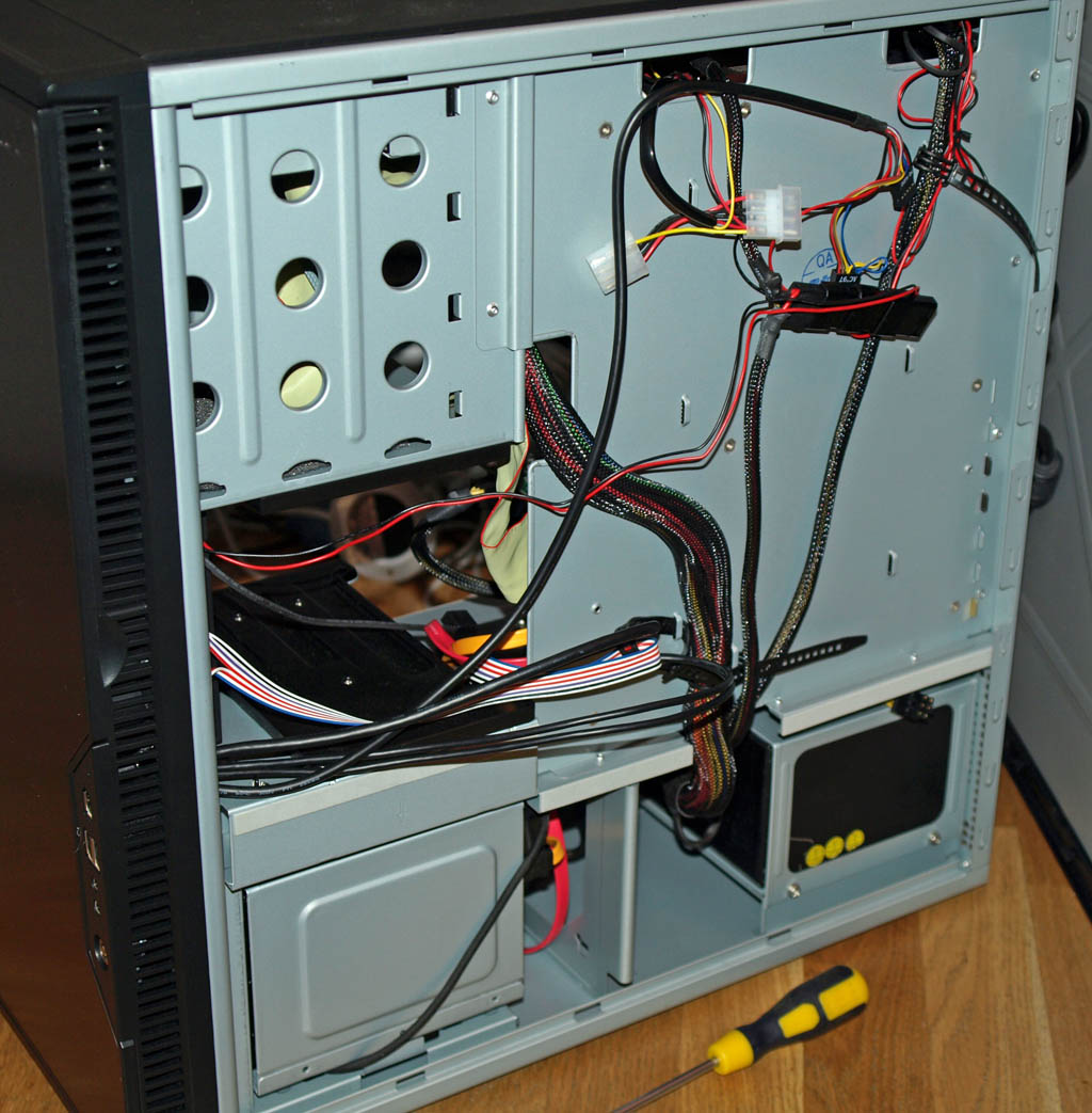 Inni, greit å ryddig uten at jeg har helt lagt sjelen i det. (ikke le av p-ata kabelen min :) )