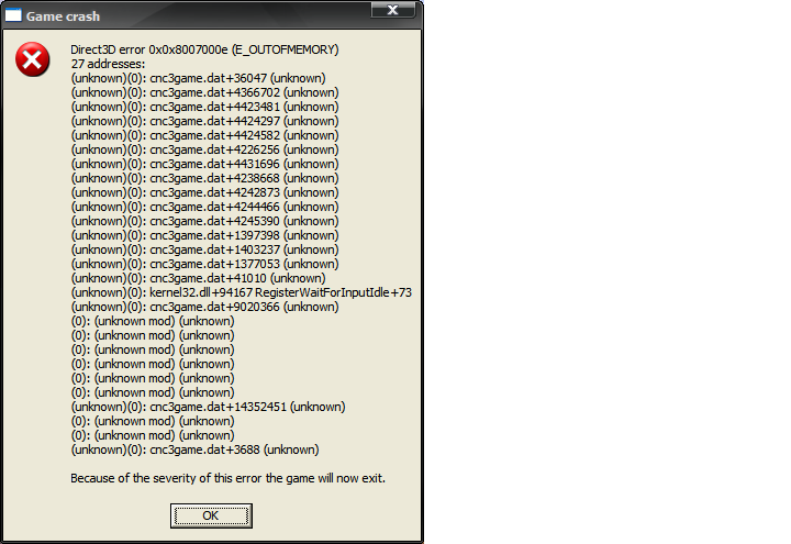 LadyKatie Skrevet 6. april 2007 Skrevet 6. april 2007 (endret) Har nå endelig fått Command & Conquer: Tiberium Wars og gleder meg villt til å spille det! Kommer til installeringen og blir ferdig med den helt uten problemer så så skal jeg starte spillet og hva kommer opp om ca. 1 min? Jo, en ERROR melding og jeg blir kastet ut! Hender at jeg får Blue Screen om ATI2dvag, og fikser det problemet. Nå kommer ikke den meldingen lenger, men kommer annen faen skap opp! Den ser sånn ut, og håper noen kan si meg hvordan jeg kan få spille spillet CNC3.bmp Endret 6. april 2007 av LadyKatie