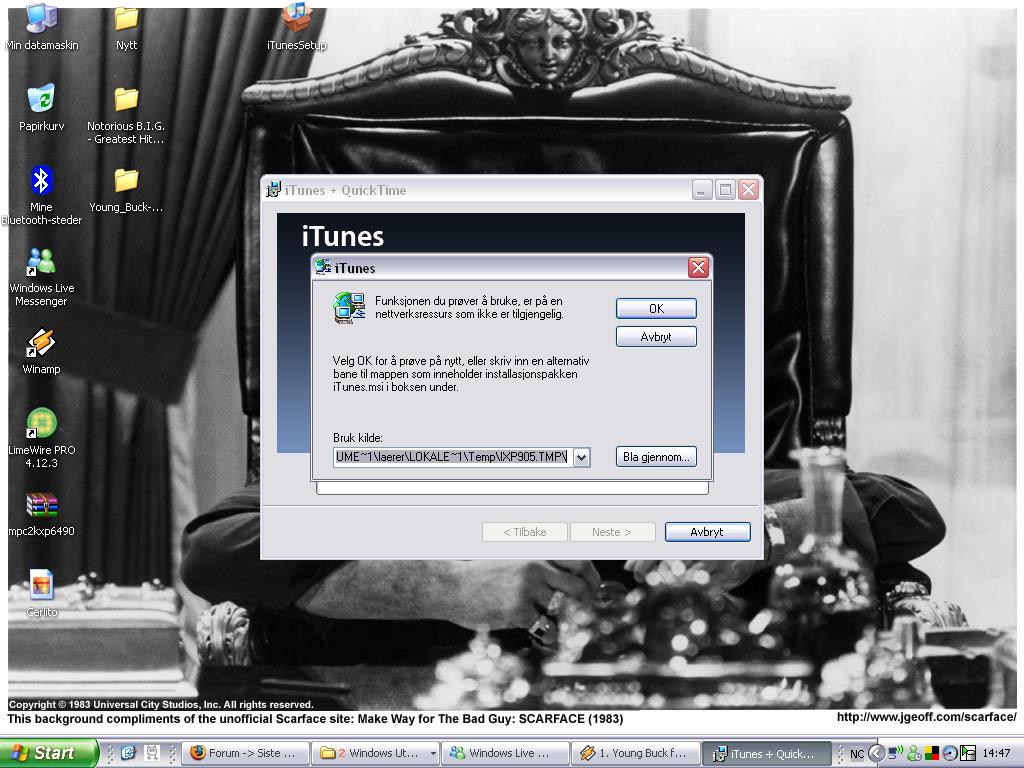 DannyVice Skrevet 9. april 2007 Skrevet 9. april 2007 La med et bilde av error beskjeden, jeg prøver å innstallerer Itunes men får den feilen. Noen som kan hjelpe