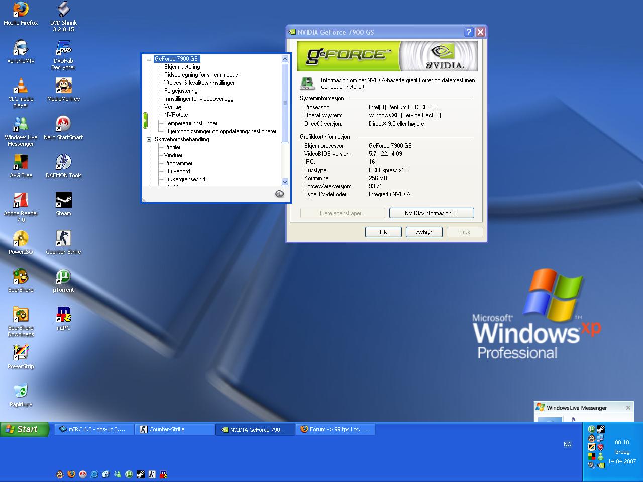 1915 Skrevet 13. april 2007 Forfatter Skrevet 13. april 2007 har instalert xp. hvor finner jeg og slå av vsync elr hva det nå var for å få 99 fps? asap takk