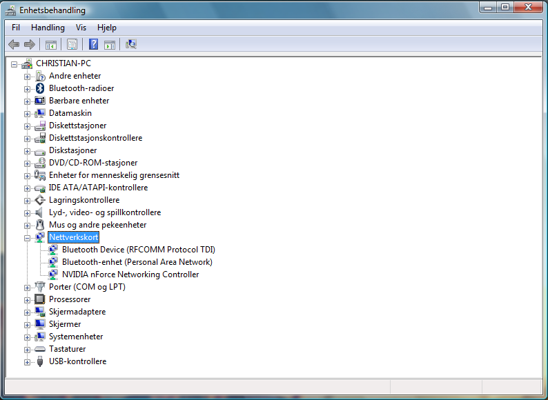 nightzirch Skrevet 26. april 2007 Skrevet 26. april 2007 (endret) Ja.. Som dere leste, oppdager ikke Vista nettverkskortet mitt (det trådløse) Jeg har innstallert driveren riktig, altså koblet kortet ut, innstallert, koblet inn igjen. Seff med reboot imellom. Noe annet jeg merket var at ikke alle filene ble innstallert da jeg innstallerte driveren og programvaren. Jeg sammenlignet med XP hvor alle filene var. Fant ut at jeg bare kunne kopiere de filene jeg manglet, over til Vista, hehe. Men tingen er at jeg ikke får noe internett på Vista. Og det er veldig kjipt. Jeg har et Linksys Wireless-G PCI 54 Mbps 802.11g , WPA/AES, Mod.nr: WMP54G (trykk) --EDIT-- Ja, PCen finner ikke maskinvaren (se vedlagt bilde) Hjelp? Enhetsbehandling.bmp Endret 26. april 2007 av Naitsirhc7