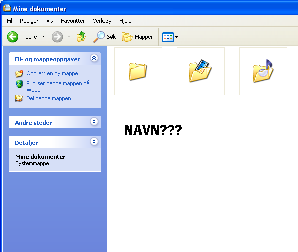 parleur Skrevet 2. mai 2007 Skrevet 2. mai 2007 Navnene på mappene mine på mine dokumenter er forsvunnet. Jeg finner ingen innstillinger på dette. Det skal ikke gå an å fjerne disse? Jeg har også prøvd å tilbakestille mappealternativene til "standard", men fremdeles vises ikke navn! Noen datagenier som kan hjelpe en ? Legger med ett bilde Uten_navn.bmp