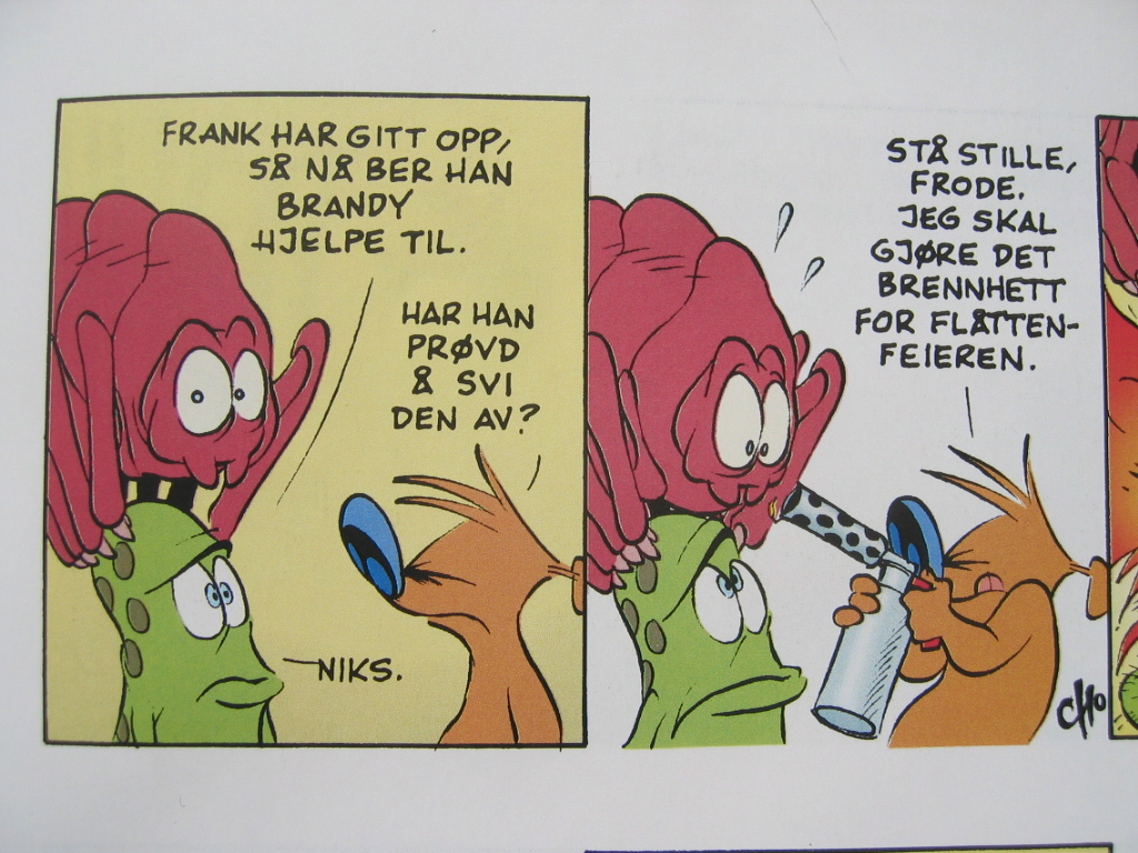 lillelisa Skrevet 22. mai 2007 Skrevet 22. mai 2007 det er muligens et skudd i blinde, men jeg prøver: jeg leter etter en tegneseriestripe, eller det vil si det er mer en rute/ensider, tror jeg. i bildet ser vi to personer, hvorav den ene har en gigantisk flått oppe på hodet. den andre påpeker at han kanskje bør sjekke seg for flått, og flåtten har en tenkeboble hvor det står "pokker" eller noe sånt..... denne sto på trykk i pondus, larsons gale verden eller noe tilsvarende for en del år siden, men jeg klarer ikke å finne den. jeg vet ikke hvem som laget den, det kan være larson, frode øverli, lars lauvik eller noen helt andre. grunnen til at jeg vil finne den, er at vi brukte denne kjempeflåtten som inspirasjon til en stor veggdekorasjon på en ungdomsklubb jeg jobber på. nå har kommunen malt om, og ved en feiltakelse ble denne veggen også malt. vi vil så gjerne ha den tilbake... kan noen hjelpe meg å finne denne, blir jeg evig takknemlig!
