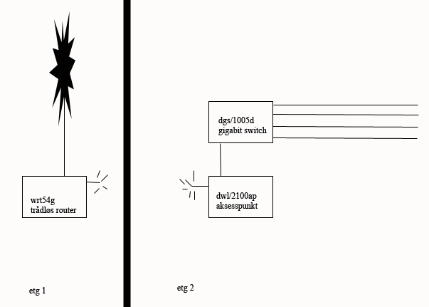 JimL Skrevet 24. mai 2007 Skrevet 24. mai 2007 Hei, har et trådløst nettverk i huset som består av en Linksys WRT54G router. Dette gjør da at jeg har trådløst nettverk i hele huset. I andre etasje har jeg brukspc, filserver og htpc stående. Grunnen til at dette nå blir litt problematisk er at jeg ønsker høyere hastighet mellom maskinene i andre etasje enn det wlan klarer å gi meg. Derfor tenkte jeg at et trådløst aksesspunkt sammen med en gigabit switch ville gi meg et lite lokalt "høyhastighets-lan" her jeg sitter, mens alle samtidig er koblet til wlan/nettet. Vet jeg kunne brukt en maskin med trådløst nettverkskort og to gigabitkort til det samme, men av enkelte årsaker har jeg ikkel lyst til å route trafikken gjennom noen av de tre pcene jeg har her oppe. Men hvordan gjør jeg dette? Har kabla det opp som vist i illustrasjonen under, men har problemer med å konfigurere aksesspunktet. Regner med jeg stopper opp ved å velge riktig modus for APet. Har følgende å velge i: Access Point PtP Bridge (regner med denne skal brukes, point to point bridge?) PtMP Bridge Ap Repeater AP Client I tillegg har Linksysen ip 192.168.1.x, mens aksesspunktet kjører med 192.168.0.x. Vil dette ha noe å si? Skal jeg ha DHCP kjørende på accesspunktet? (regner nesten med det). Håper noen kan ta seg tia, jeg føler meg fryktelig dum her jeg sitter.