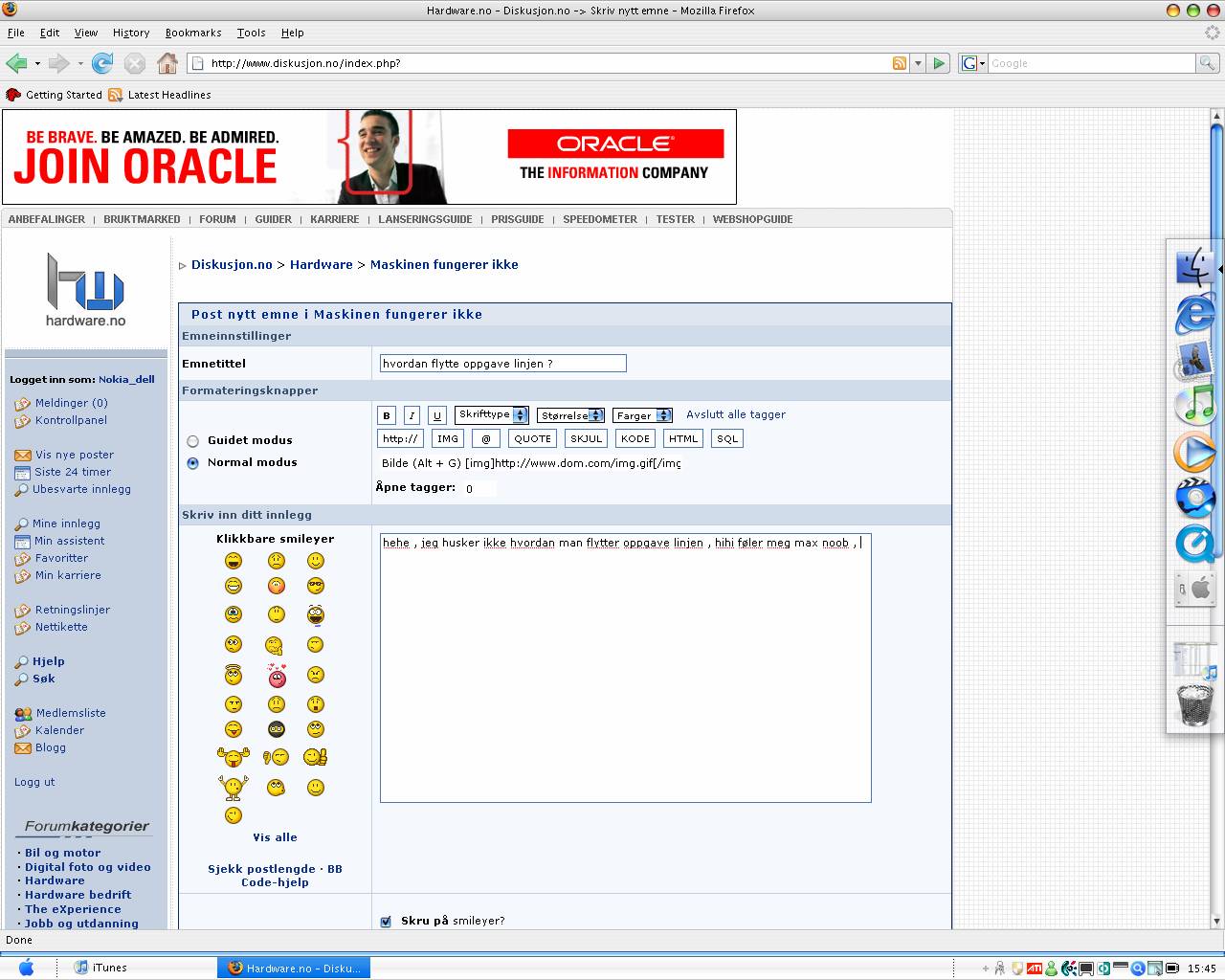 Petaaar Skrevet 25. mai 2007 Skrevet 25. mai 2007 (endret) hehe , jeg husker ikke hvordan man flytter oppgave linjen , hihi føler meg max noob , Den i bånn lissom , vil ha den på toppen Endret 25. mai 2007 av Nokia_dell