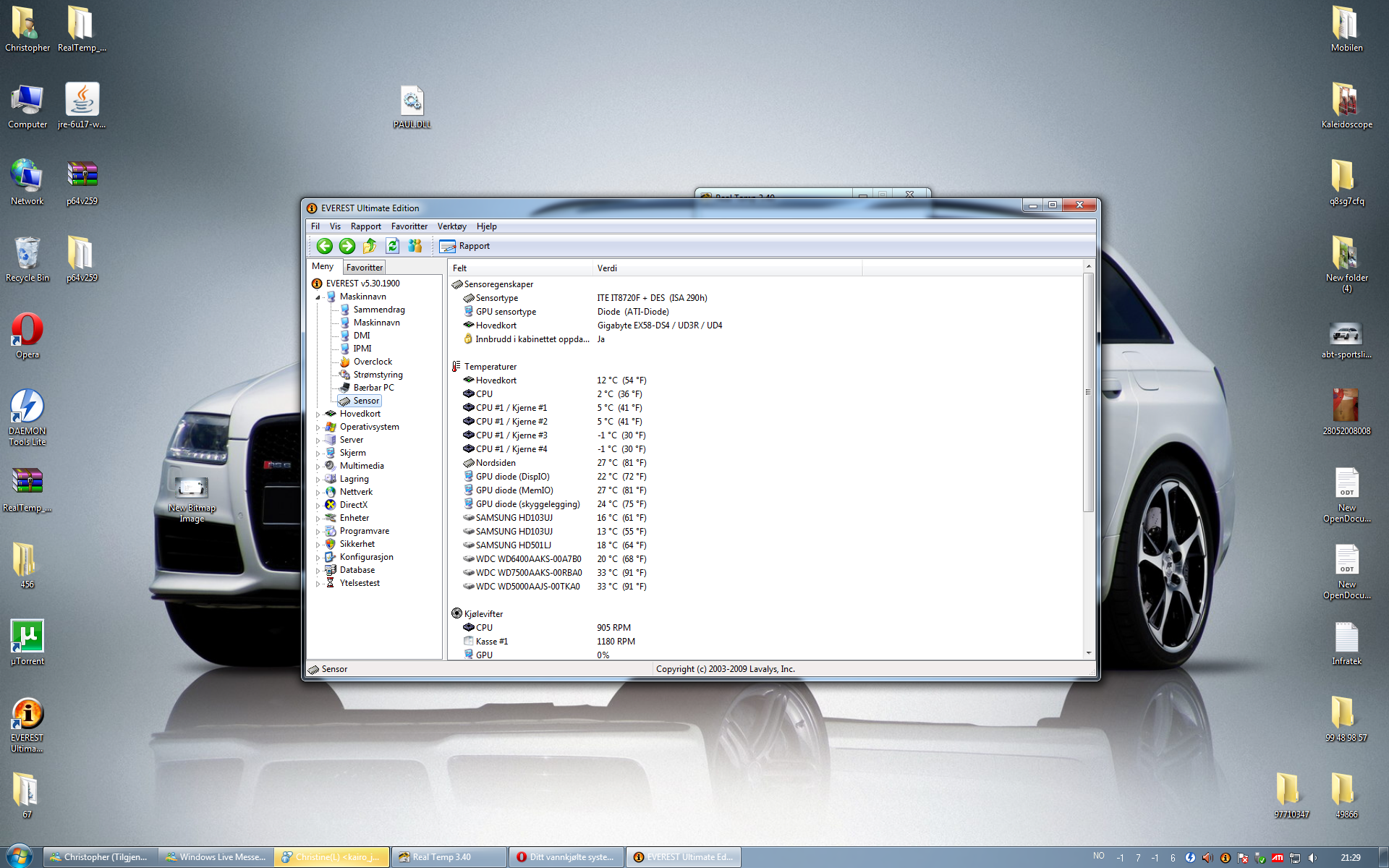 Eirik Skrevet 23. desember 2009 Skrevet 23. desember 2009 Se på det slik.. I et vanlig rom med temp på 25 vil du få rundt 50-60 grader load på et litt heftig kort. Så en 20-30 grader over romtemp må man regne med. Skal ikke si at det ikke er andre faktorer som spiller inn, men det handler mer om hvor ting er plassert i kabinettet og slikt.