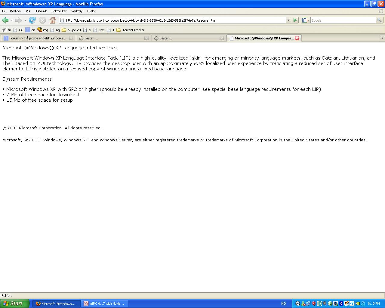 kaizer2x Skrevet 10. juni 2007 Skrevet 10. juni 2007 Windows XP Language Interface Pack Brief Description: This English page is for reference only, Language Interface Packs (LIP) for Windows XP Professional and Windows XP Home Edition is not available in English, but provides a localized User Interface for emerging or minority language markets. http://www.microsoft.com/downloads/details...&DisplayLang=en du burde sjekke va det er først googlet bare..