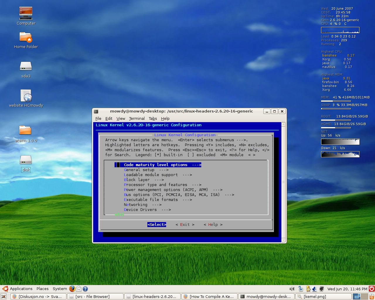 mowdy Skrevet 20. juni 2007 Forfatter Skrevet 20. juni 2007 (endret) no tror eg har fått til litt komt frem til en meny, trenger litt hjelp aldri gjort dette før og har ikkje lyst og øydelegge noe ka skal eg gjøre her? eg skal legge til : Code: Kernel options Device Drivers -> Input device support -> Joystick interface Device Drivers -> USB support -> USB Human Interface Device (full HID) support Device Drivers -> USB support -> USB Human Interface Device (full HID) support -> HID input layer support (this cannot be compiled as a module) Device Drivers -> USB support -> X-Box gamepad support Save config and compile kernel! EDIT:Komt litt lengre men når eg prøver og include : Device Drivers -> USB support -> USB Human Interface Device (full HID) support samme med : Device Drivers -> USB support -> X-Box gamepad support kommer det at: this feature depends on another which has been configured as a module. as a result, this feature will be build as a module. Ka betyr det? Endret 20. juni 2007 av mowdy