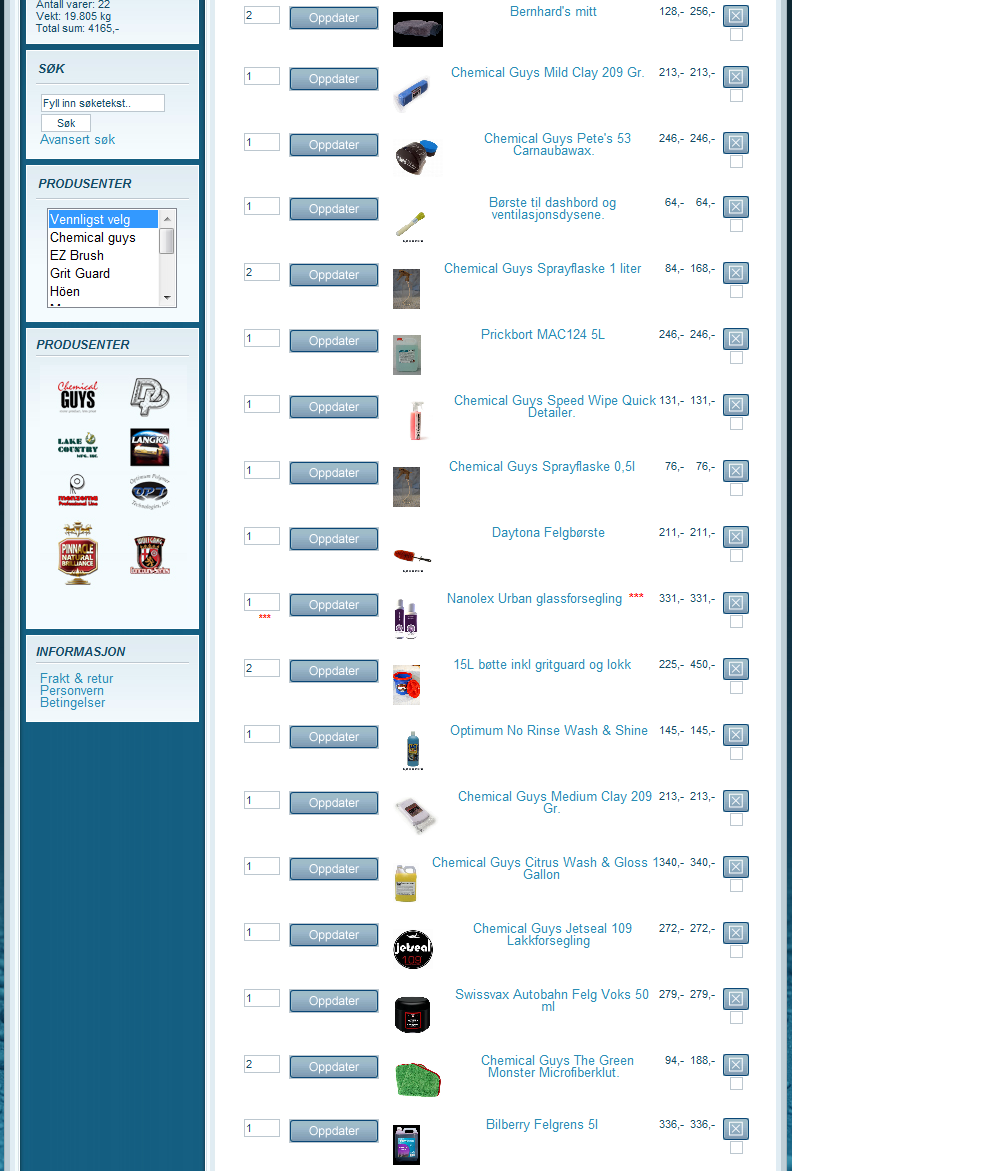 Adversary Skrevet 23. april 2011 Skrevet 23. april 2011 (endret) Kan føles dyrt til tider, men mange av produktene du kjøper varer jo en evighet Medium clay burde være nok i de fleste tilfeller, om du ikke har claya bilen før tror jeg ikke mild er aggresiv nok. Husk at clay kun skal brukes før polering/ripefjerning da denne vil lage små riper. Scholl polering Prickbort for avfetting, relativt mild mot voks og tar alt av asfalt etc. Har bare prøvd Bilberry til felgrens. Dette skal nok være en av de bedre pluss at den kan/skal blandes ut. Varer lenge. Styr forresten unna syrebasert felgrens. Til beskyttelse har jeg hørt mye bra om Pete's 53 Av de såpene SS har på lager har jeg ikke peiling.. Har ikke foamcannon selv, men kan absolutt anbefales! Edit: Godkjemi.com er forresten konk. Synd, for det var ei svært bra sjappe. Edit2: http://www.detailersclub.no/forum/ må jo nevnes, herlig side for å sanke info om bilpleie! Endret 23. april 2011 av Adversary