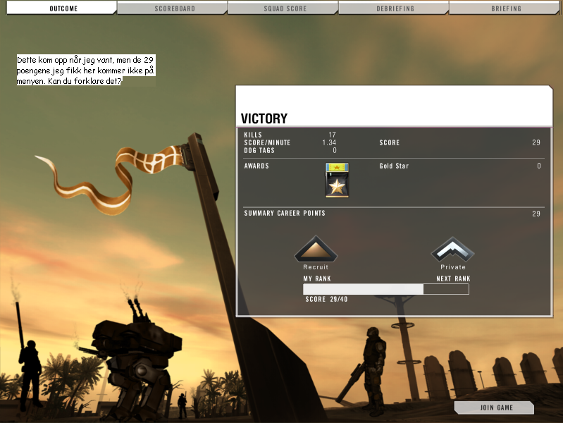 Snerk Skrevet 10. juli 2007 Skrevet 10. juli 2007 Grunnen til at poengene ikke kommer opp i menyen og at du derfor ikke får noen promotion, er trolig bare fordi EA er treg med å få oppdatert kontoen din. Det hender ofte. Om de ikke er kommet til i morgen så prøv å send en mail til EA. I mellomtiden kan du bare fortsette å spille, poengene du får inntil videre skal registreres.