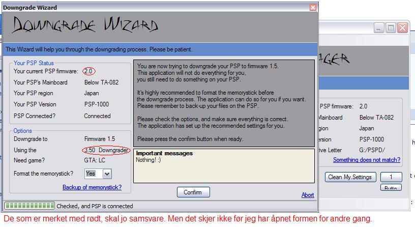 AnaXyd Skrevet 13. juli 2007 Forfatter Skrevet 13. juli 2007 (endret) Jeg er ikke så avansert enda, slik at jeg kan gjøre det du nevnte.. Timer1: Er for å sjekke om PSP'n er koblet til. (Jeg kan strengt tatt ikke huske hvorfor jeg la inn timerne nå)Timer2: Bare hjelper en progressbar med å fylle seg opp. Mer som en effekt. Timer3: Denne disabler hele downgraderen ( Jeg aner ikke hvorfor jeg har satt den slik ) Men, jeg tror den andre koden jeg postet her er litt bedre å gå ut ifra? Den funker omtrent likt, men det er en liten bug. Jeg skal prøve å forklare den: Den fungerer veldig bra, men det er en bug. Når jeg har satt en setting(jeg kan velge hvilken firmware PSP'n kjører på, og diverse annet i en meny jeg har laget) Når jeg klikker meg ut av den settings formen, skal den lagre til My.Settings. Deretter, åpner jeg formen som skal kopiere de riktige filene til PSP. (Filene som skal bli kopiert avhenger av hvilken firmware jeg har satt. Er det 2.0, skal 2.0 filene kopieres over. Er det 3.50, skal 3.50 filene over.) Men, etter at jeg har endret settingen, skjønner ikke den formen at det skal brukes de riktige filene som samsvarer med riktig firmware. Se illustrasjon under. Det må jo være noe med den koden jeg akkurat har laget? Poster den en gang til: Klikk for å se/fjerne innholdet nedenfor ' Set the firmware If My.Settings.PSP_Firmware = "1.51" Or My.Settings.PSP_Firmware = "1.52" Or My.Settings.PSP_Firmware = "2.0" And My.Settings.PSP_Motherboard = "Below TA-082" = True Then My.Settings.PSP_DG = "2.0" ElseIf My.Settings.PSP_Firmware = "2.01" Or My.Settings.PSP_Firmware = "2.50" Or My.Settings.PSP_Firmware = "2.60" Or My.Settings.PSP_Firmware = "2.70" Or My.Settings.PSP_Firmware = "2.71" Then My.Settings.PSP_DG = "2.71" ElseIf My.Settings.PSP_Firmware = "2.80" Then My.Settings.PSP_DG = "2.80" ElseIf My.Settings.PSP_Firmware = "2.81" Or My.Settings.PSP_Firmware = "2.82" Or My.Settings.PSP_Firmware = "3.00" Or My.Settings.PSP_Firmware = "3.01" Or My.Settings.PSP_Firmware = "3.02" Or My.Settings.PSP_Firmware = "3.03" Then My.Settings.PSP_DG = "3.03" ElseIf My.Settings.PSP_Firmware = "3.50" Then My.Settings.PSP_DG = "3.50" End If Er veldig takknemlig om noen gidder å hjelpe! EDIT: Ah! Jeg tror jeg fant det ut gitt. Disse to: Label17.Text = My.Settings.PSP_DG Label11.Text = My.Settings.PSP_Firmware Er ansvarlig for de tallene som skal samsvare. Disse lå over den andre koden, slik at de ble kjørt først. Jeg tror det var alt som skulle til? Endret 13. juli 2007 av AnaXyd