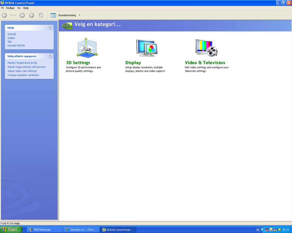 Engen_2k Skrevet 15. juli 2007 Skrevet 15. juli 2007 (endret) Når jeg skulle inn i control panelet til skjermkoretet i dag hadde det vist blitt storeforandringer på det Før så var det jo den vanelige layouten som sikker mange av deer veit ossen ser ut. Der kan man jo stille det meste som trengs, men den nye som plutselig var der var det såvidt innstillingsmuligheter for og spesielt ting som clocking og sånt var ikke nevnt med et ord! Her er et bildet av hvordan det er: Klikk for å se/fjerne innholdet nedenfor Så hvis det er noen måte jeg kan få det sånn det var på uten og måtte finne gamle drivere hadde det vært fint. Eller værtfall fått det sånn at jeg kan stille og clocke litt mer en jeg kan i det tragiske kotrol panelet der Takker for hjelp Endret 16. juli 2007 av Engen_2k