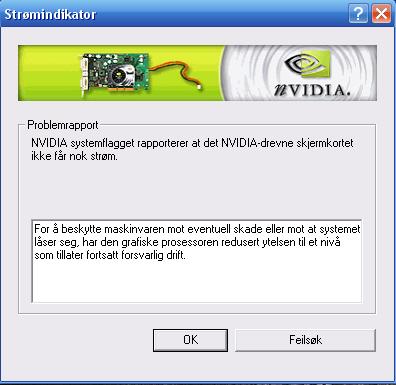 dj_vega Skrevet 22. juli 2007 Skrevet 22. juli 2007 (endret) Hei. Jeg kjøpte et 6mmd gammelt skjermkort at en kompis så og skjermkortet klager over at det ikke får nok strøm, men det kan jeg ikke skjønne hvorfor, da strømforsyningen er en Kvalitet strømforsyning fra Fortron/Source på 350watt (kontinuerlig) og dette er da pc`n min: Kabinett: Chenbro Gaming Bomb Strømforsyning: Fortron/source 350w Harddisk 1: Western Digital Caviar SE 250 GB IDE Harddisk 2: Western Digital Caviar SE 200 GB S-ATA Prosessor: Intel Celeron D 330 (2.66 GHz) Ram 1: GeIL Value DDR400 512 MB Ram 2: Veritech DDR400 512 MB Skjermkort: Club3D Geforce 7600 GS 256MB AGP Hovedkort: ASRock P4i65PE-M Lydkort: TerraTec SoundSystem Aureon 5.1 W-lan kort: Linksys WMP54G Firewire og usb kontroller: Belkin Hi-Speed USB 2.0/FireWire Dvd brenner 1: Nec AD-5170 Dvd brenner 2: Samsung TS-H552B Cpu Kjøler: Cooler Master DI4-8KD3B-0L Diskett Stasjon: SAMSUNG Floppy Disk Drive 1.44MB 3.5" AT Internal Black Vifter: 2x 80mm Raidmax Nå har jeg skrevet ALT internt som er i pc`n så nå lurer jeg på om jeg trenger en NY strømforsyning eller at det bare en programm feil? Legger foresten til et bilde som viser hvordam den såkalte advarselen ser ut. Takk For ALLE Svar MVH: Tor Erlend Olsen BTW: Edit: Skriveleif Endret 22. juli 2007 av dj_vega